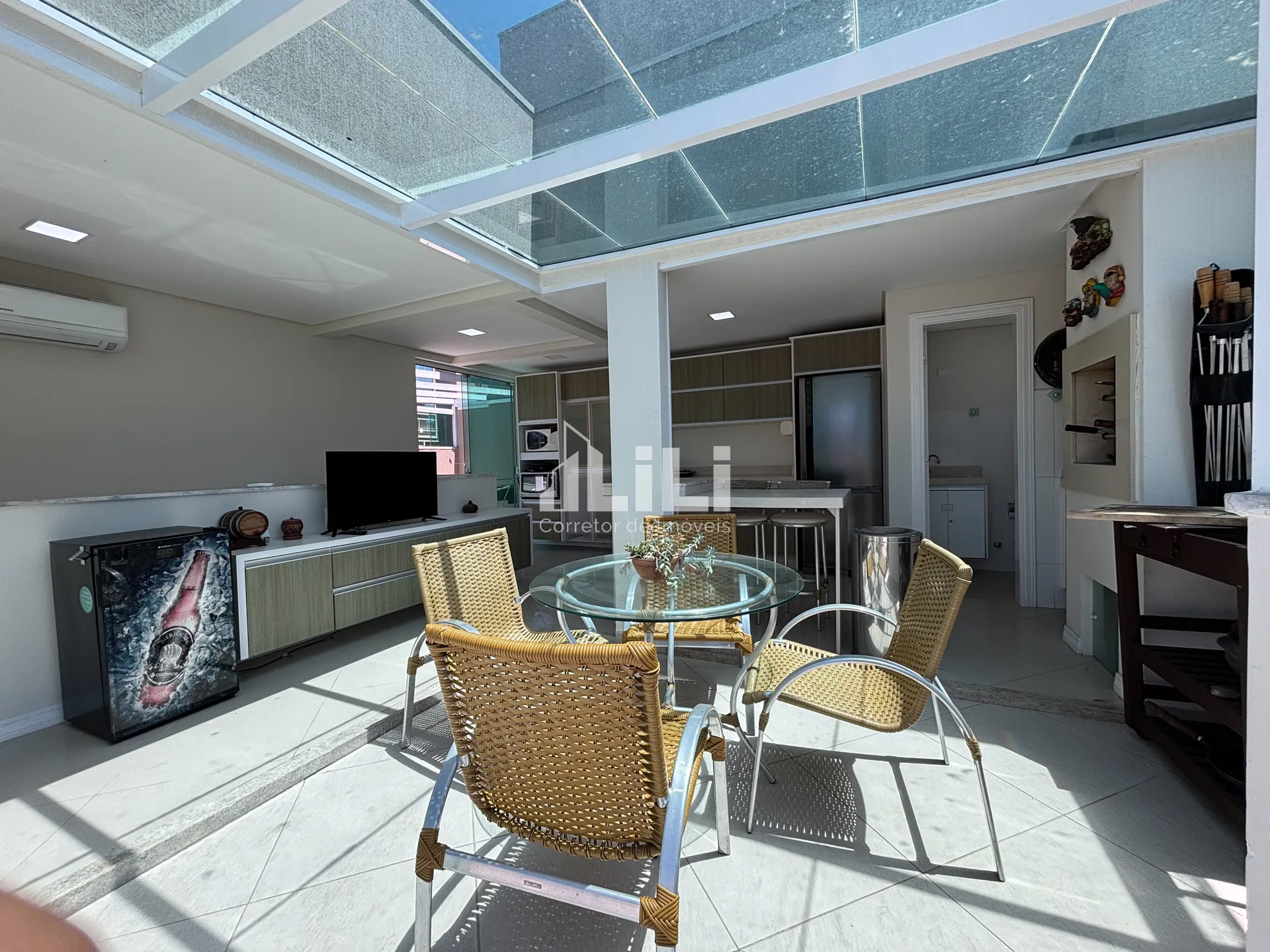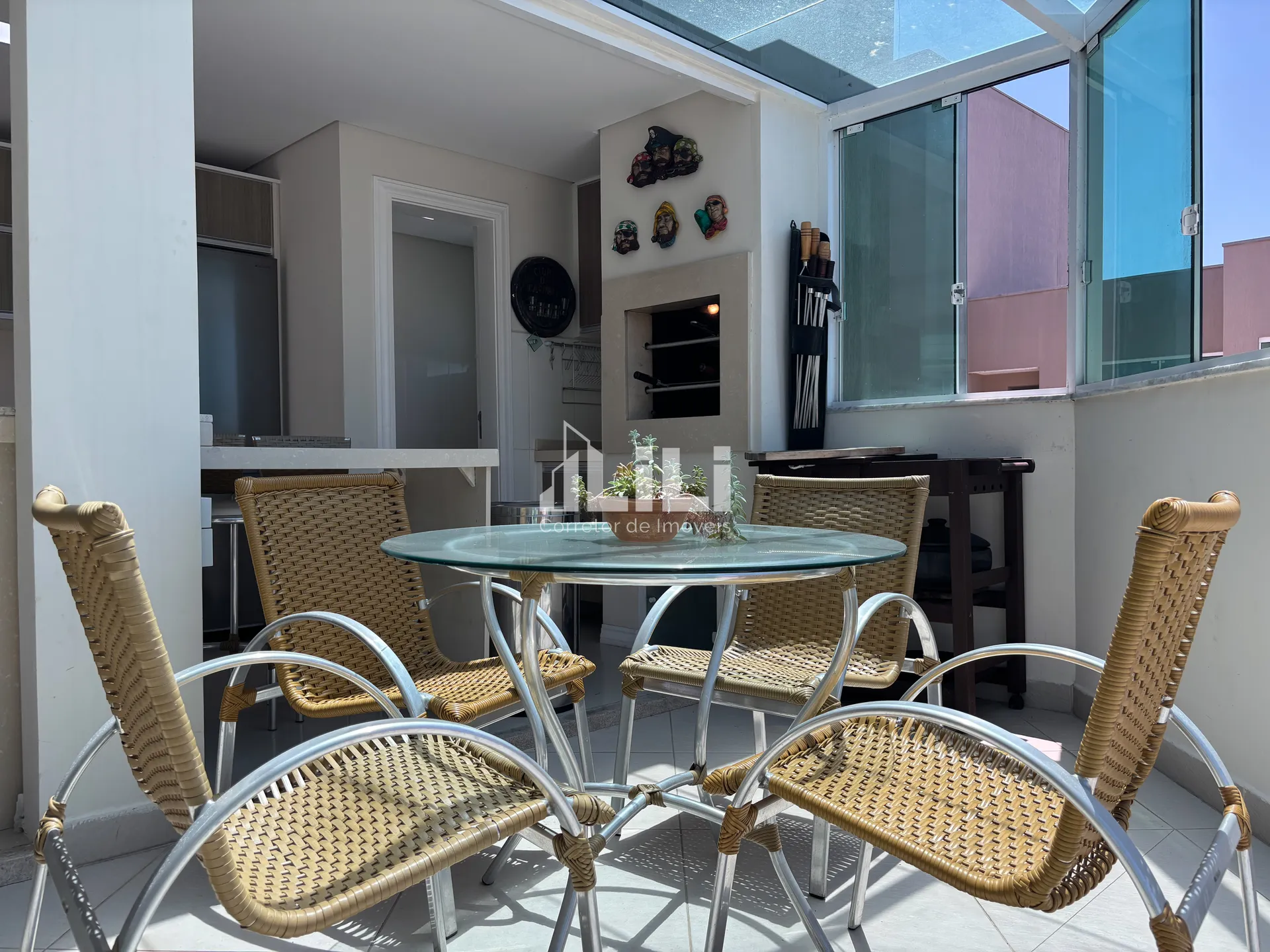 Terraço gourmet com churrasqueira a carvão;