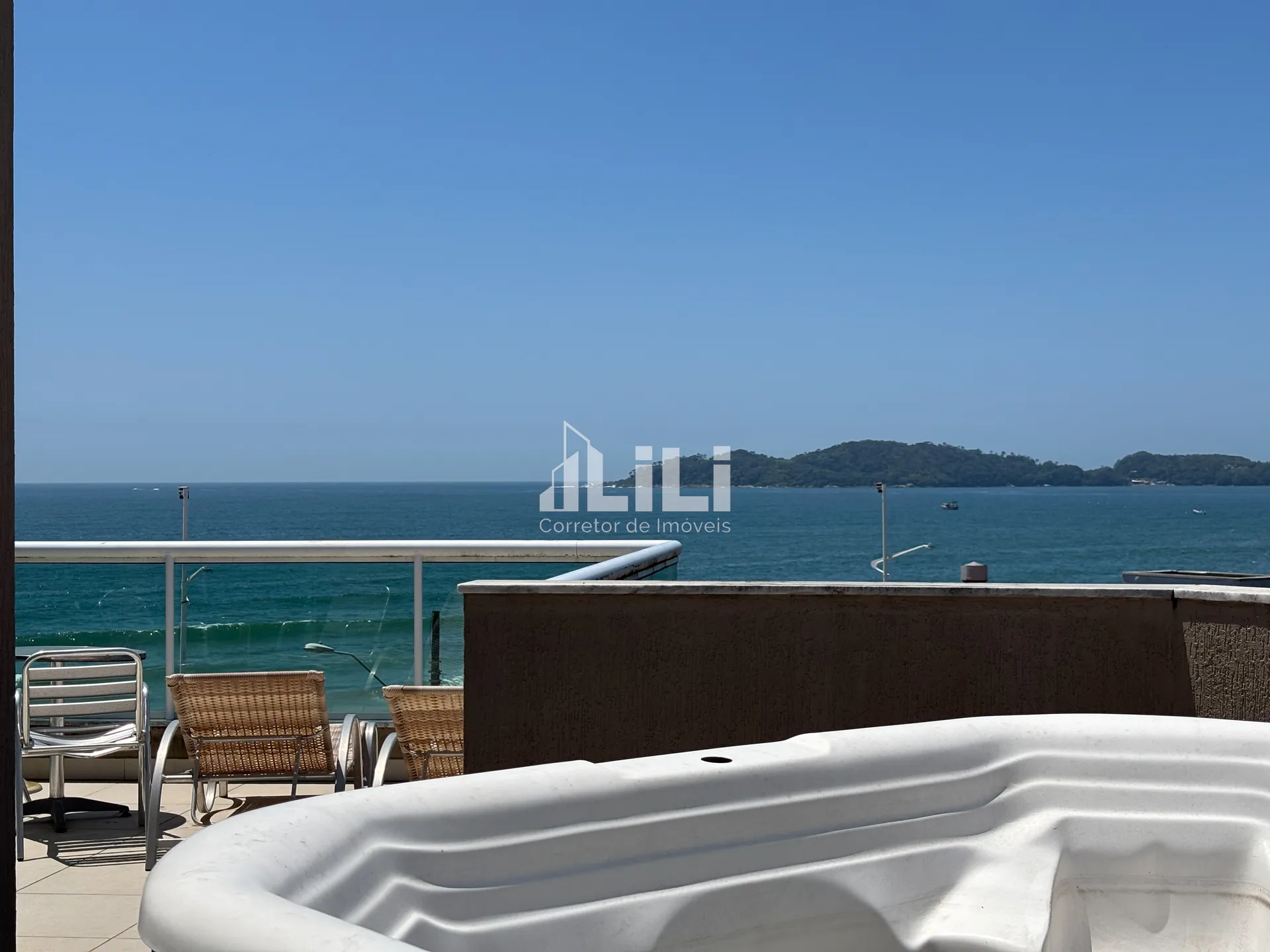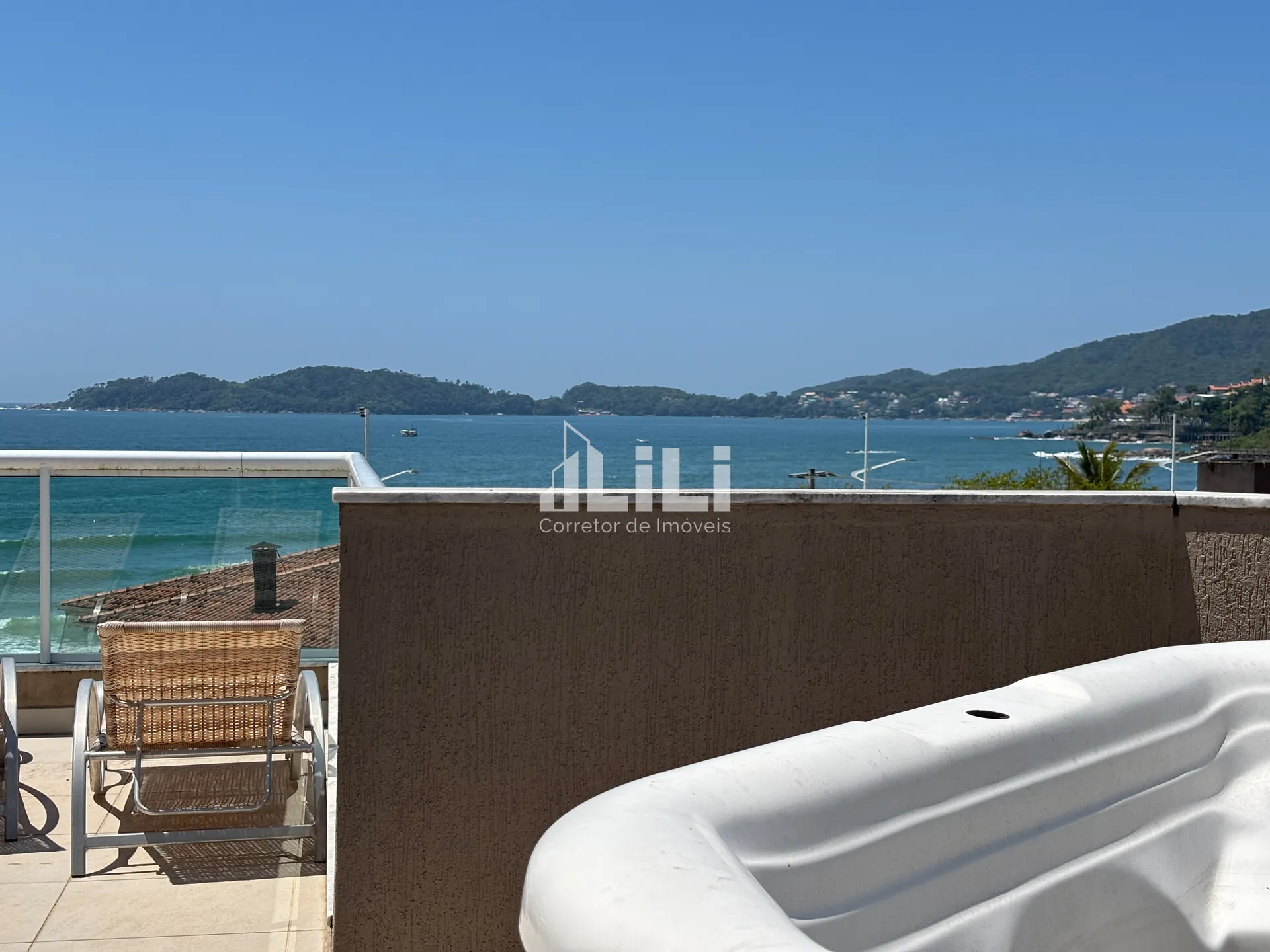 Capacidade: até 8 pessoas | 3 Dormitórios (sendo 1 suíte com vista mar) | 2 Vagas de garagem (1 vaga + 1 vaga dupla) | Hidromassagem privativa | Acesso exclusivo à faixa de areia