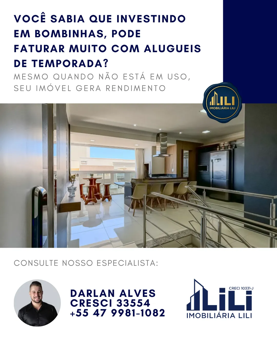 3 dormitórios climatizados (sendo 1 suíte com vista mar);